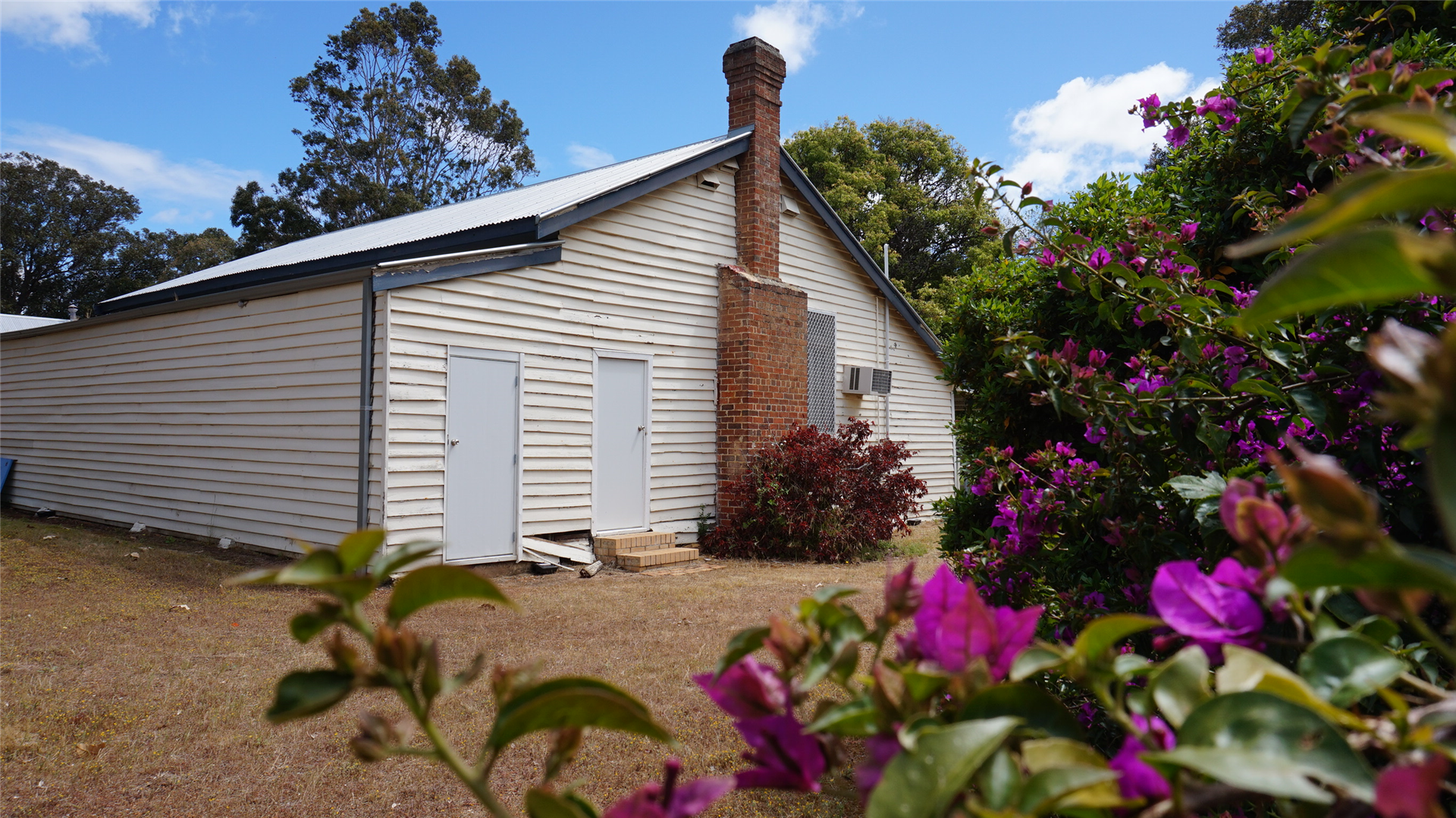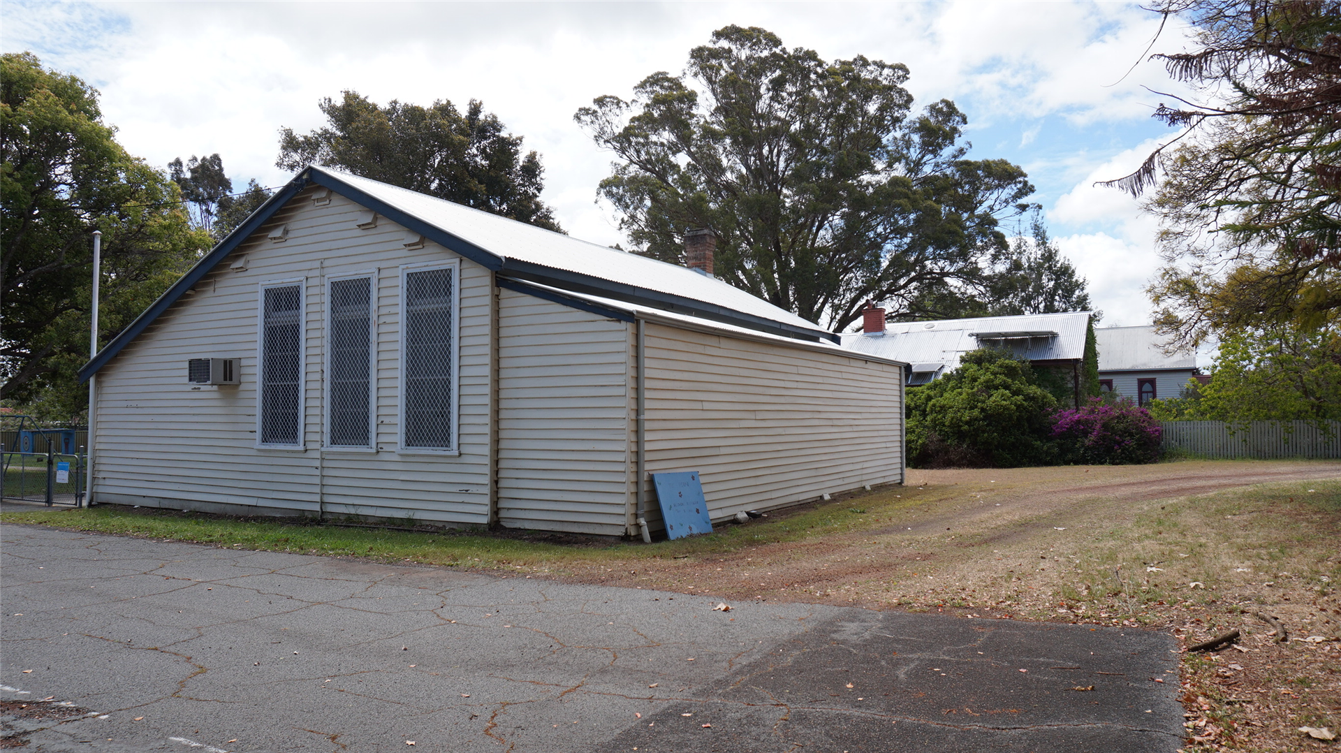 North of the main room is another timber weatherboard-clad building (1927) with a gable corrugated iron roof, although not as steeply pitched.